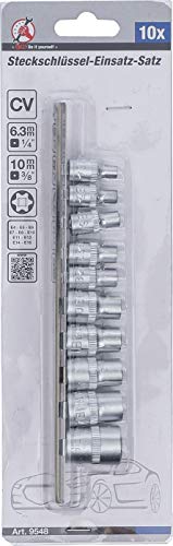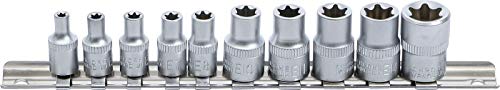 BGS Diy 9548 - Set di chiavi a bussola con profilo E, 6,3 mm (1/4") / 10 mm (3/8") | SW E4 - E16 | 10 pezzi