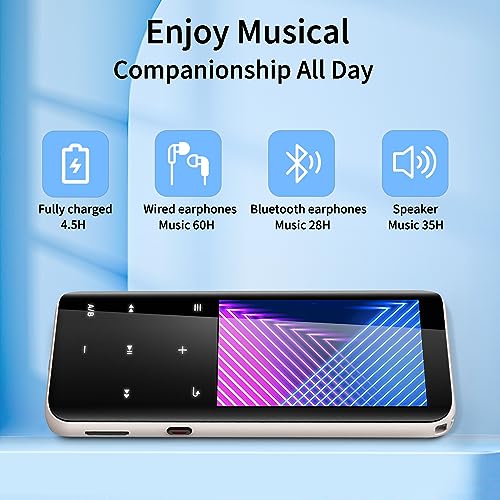 【Altoparlanti HD Integrati & Lunga Durata della Batteria】 L'MP3 player ha altoparlanti HD integrati, offrendo un'esperienza musicale più vivida e coinvolgente. Il volume può essere regolato da 0-30, puoi riprodurre musica senza cuffie e rilassare le tue orecchie. Con batteria al litio ricaricabile, completamente carica in 4,5 ore, puoi goderti la riproduzione musicale per: cuffie cablate 60 ore, o altoparlanti 35 ore, o cuffie Bluetooth 28 ore, permettendoti di goderti la musica tutto il giorno