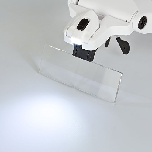MG 9892b-1-oz - LED fascia lente d' ingrandimento/Occhiali con fascia per la testa regolabile con 5 X Lenti a diversi spessori - con 2 LED luci - Completo di accessori