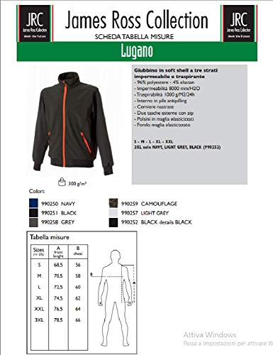 JRC 990250 Lugano Giubbino Uomo in Softshell Misto Poliestere Impermeabile Traspirante Chiusura con Zip Tasche Blu Navy (XL)