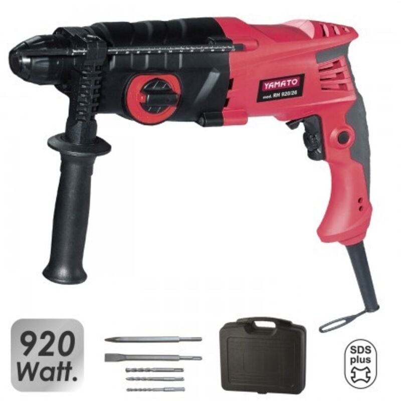 Caratteristiche: Attacco SDS-Plus - Variatore di velocità - Reversibile - 4 funzioni - Capacità max foratura: muro/ferro/legno Ø26/13/30 mm. - Colpi al minuto 4.820 bpm - Peso 3,3 kg. - Dotazione: Valigetta in PVC, 3 punte SDS-Plus Ø8x150 mm, Ø10x150 mm, Ø12x150 mm., scalpello a punta e a taglio 14x250 mm. POTENZA 920W COLPO 2,6 JOULE