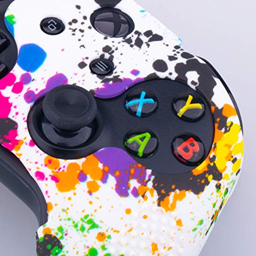 9CDeer 1 Pezzo di Stampa con Personalizzato Silicone Copertina Pelle Manica Caso + 8 Thumb Grips per Controller Xbox One/S/X Spruzzi di graffiti Compatibile con Adattatore Stereo per Cuffie Ufficiale