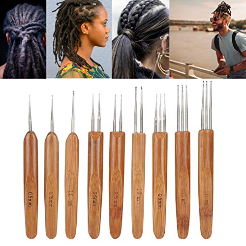 9Pcs Dreadlock Crochet Hook Set, Single Double 3 Bamboo Manico Treccia Capelli Strumento di tessitura a maglia Ricamo stile francese Cucito Accessori per cucito