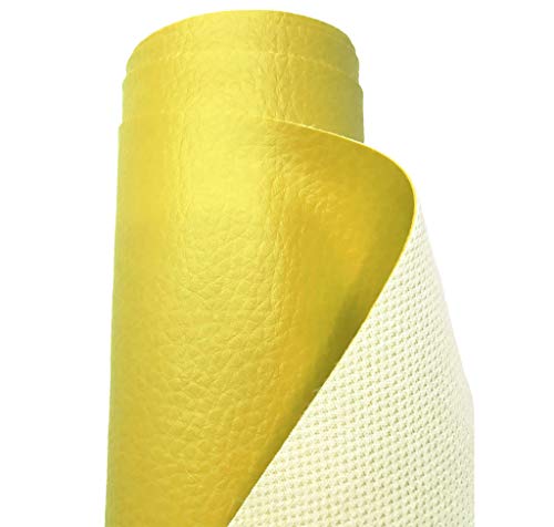 A-Express Strutturato Tessuto Ecopelle Materiale Granulato Morbida Finta pelle Vinile Materiale - Giallo Mezzo Metro (50cm x 140cm)