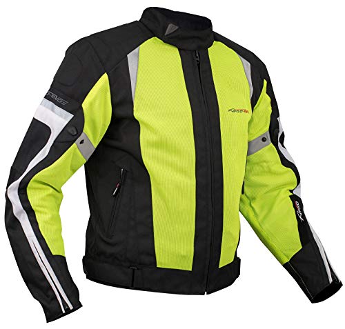 A-Pro Giacca Moto estiva Tessuto Rete Mesh Traspirante Protezioni CE Fluo 2X