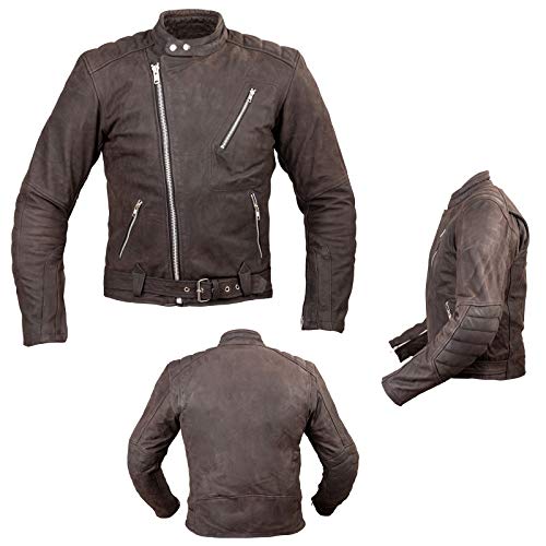 A-Pro Giacca Pelle Pregiata Moto Protezioni Fodera Termica Removibile S