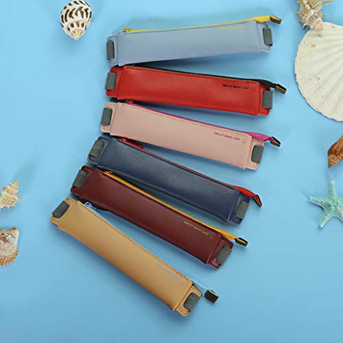 A0127 - Scatola portapenne, astuccio portamatite, portatile, elastico, in pelle PU, per riporre la cancelleria degli studenti 19.5x4.5cm azzurro