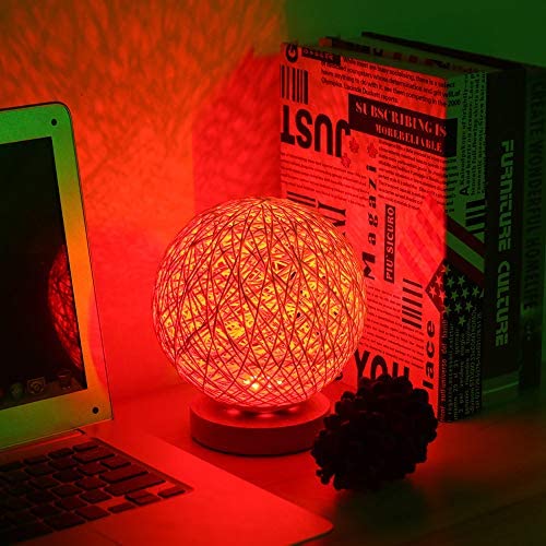 A0ZBZ Moderna lampada da tavolo a sfera sferica in vimini in vimini in rattan, 16 colori-USB Lampada da comodino decorativa in legno con luce notturna a proiezione romantica
