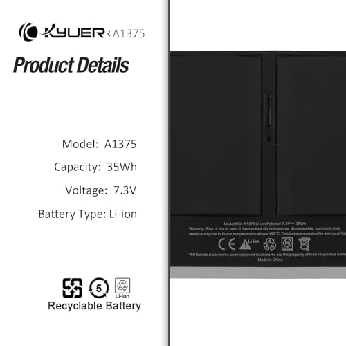 A1375 Laptop Batteria Replacement per MacBook Air 11" 11.6" A1370 (Only Late 2010 Version) EMC 2393 MC505LL/A MC506LL/A MC507LL/A MC505ZP/A MC506X/A MC506F/A MC506J/A MC505LZ/A MC505D/A MC505F/A 35Wh