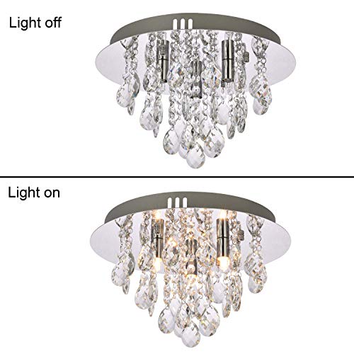 A1A9 Lampadario di cristallo moderno da incasso, plafoniere cromate rotonde a goccia di cristallo K9, lampada a sospensione a LED per soggiorno, sala da pranzo, camera da letto D35cm (3 Luci)