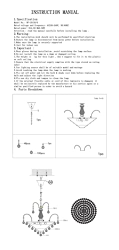Richiede auto-assemblaggio: Questo prodotto è elencato CE. Si prega di seguire rigorosamente le istruzioni per installare l'illuminazione. Facile da installare. Istruzioni incluse. In caso di parti danneggiate o mancanti durante il trasporto, la può essere organizzata, vi preghiamo di contattarci delle parti in tempo.