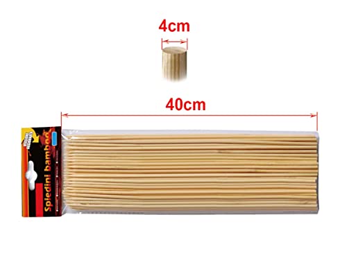 A2ZWORLD 50 Pezzi Spiedini Bambu, Spiedini Bamboo Diametro 4mm, Lunghezza da 25cm 30cm 35cm 40cm 45cm 50cm (40cm)