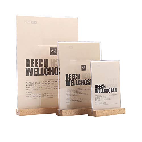 A4/A5/A6 Porta Menu da Tavolo,Acrilico Portamenu A Forma di T,Verticale Espositore da Tavolo,Portamenù Porta Avvisi da Tavolo,Portabase in Legno per Ristorante Negozio Bar Azienda