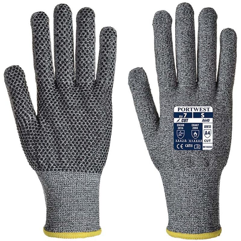 Guanto Sabre-Dot Rivestimento resistente al taglio di alta qualità, fornisce una protezione superiore raggiungendo il livello di taglio D. L'aggiunta di punti in PVC al palmo migliora le prestazioni di presa, fornendo così una maggiore sicurezza per gli oggetti appuntiti tenuti dalla mano. Certificato CE