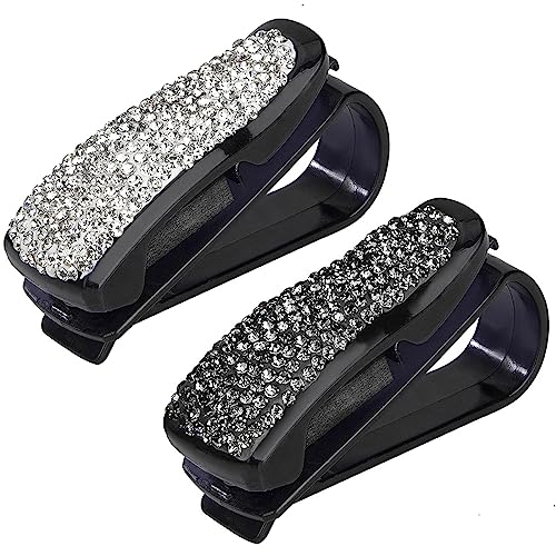AAED 2 Clip per Occhiali da Auto, Nero Bianco, Occhiali Auto Supporto per Occhiali da Sole con Strass Clip per Carta di Credito per Parasole Occhiali da Vista 2 Pezzi