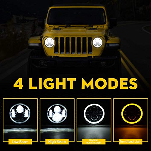 AAIWA Fari anteriori da 7 "a LED Halo, Chip LED CREE, 80W Fascio Hi/Lo da 9600 lumen con anello Halo Angel Eyes DRL