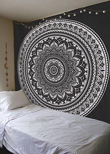 Aakriti Gallery Black And White Tapestry Hippie Tapestries Mandala Bohemian Psychedelic Intricate Indian Bedspread 92x82 Inches (Old Ombre)