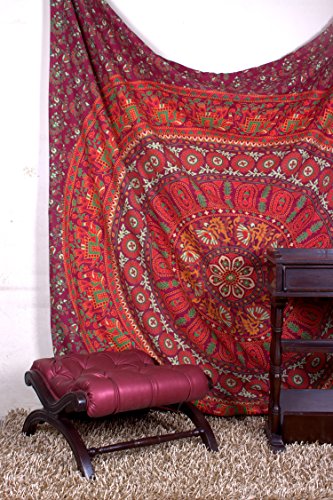 Aakriti Gallery Cotton Mandala Tapestry Wall Hanging - Bohemian Bedspread, Boho Blanket/Throw Tapestries for Living Room, Home Decor (Maroon Mandala, 220x200 cms)