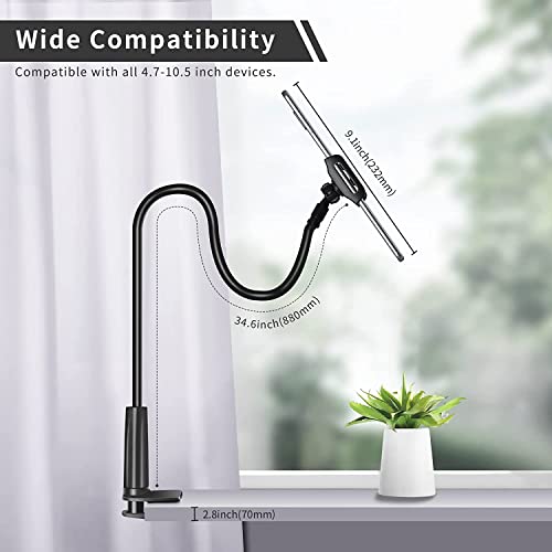 [ Base robusta ]: Il supporto per tablet a collo d'oca può essere installato su testiera, comodino, scrivanie, sedie, tavolini da caffè, piano di lavoro della cucina, ecc. L'intervallo di regolazione massimo della base può raggiungere 6,5cm e la superficie di contatto è dotato di due cuscinetti protettivi, quindi non c'è bisogno di preoccuparsi di danneggiare i mobili