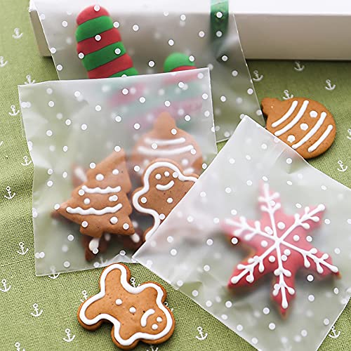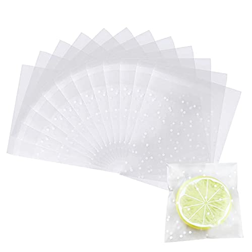 Aallo 200 Pz Sacchetti Trasparenti A Pois Bianco Borse per Biscotti Sacchetto di Plastica Autoadesivo Sacchetti Regalo per Natale,Matrimonio,Pasticceria,Biscotti,Caramell,Fiori Secchi (7 x 7+3cm)