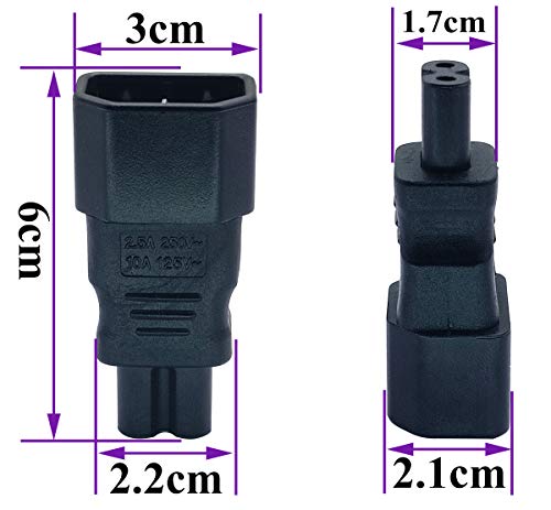Converti il tuo cavo di alimentazione C13 in una porta femmina IEC 320 C7 a 2 poli senza cavo aggiuntivo, comodo adattatore spesso utilizzato per convertire Smart TV LCD a LED, monitor, stampante, scanner, proiettore, console di gioco, sistema di intrattenimento, altoparlante audio multiroom, caricatore per notebook portatile, Caricabatteria per fotocamera, macchina da cucire e altri dispositivi che richiedono un cavo CA a 2 poli, ecc