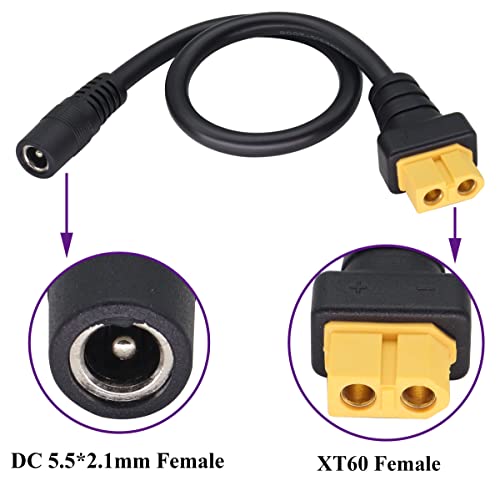 AAOTOKK Cavo Adattatore da DC5.5x2.1mm a XT60 Femmina a DC5.5x2.1mm Cavo Adattatore Jack Femmina per Saldatore TS100, Alimentatore Monitor FPV,cavo di Alimentazione Drone.(DC 2,1mm-F/30cm-2Pezzi)