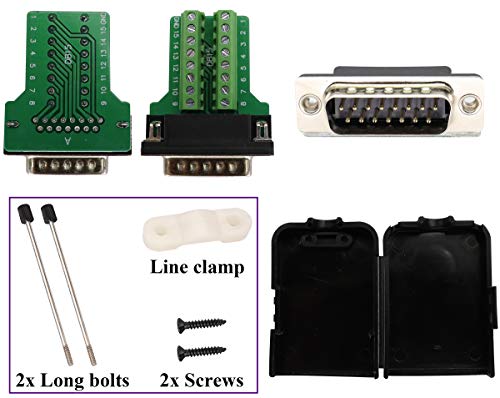 AAOTOKK DB15 Vite Morsettiera Adattatore D-SUB 15 Pin 2 File DB15 Maschio a 16 Pin/Vie Femmina Connettore Seriale Breakout Board Modulo di Segnale con Custodia(2 Pezzi/Maschio)