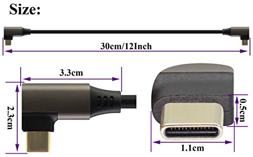 AAOTOKK 90 Gradi USB 3.1 Tipo C Cavo Angolo Destro Sinistro 3.1 USB Tipo C Maschio 4K@60Hz Prolunga Cavo Supporta Ricarica,Dati,Audio,Video Cavo per Laptop,Tablet,Telefono Cellulare.(0,3 M/1Piedi)