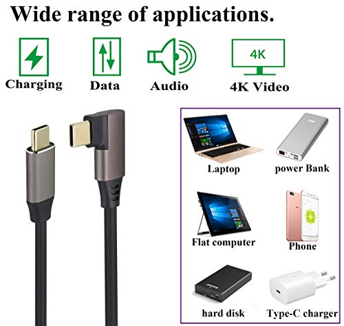 Quantità:(2 Pezzi)Dimensioni:lunghezza (0,3Metro/1Piedi) Materiale:Plastica Guscio in lega di alluminio Adattatore di tipo C.Colore: (grigio) Guscio in lega di alluminio Adattatore tipo C Corpo del cavo (nero) Connettori 1: Cavo di prolunga maschio USB 3.1 Tipo C di 90 gradi Gen 2 (10Gbps) destro e sinistro (10Gbps), Connettori 2:Gen 2 (10Gbps) ) Cavo USB tipo c 3.1 maschio (2,5A)(Nota:l'effettivo trasferimento dei dati dipende dalle dimensioni del file,dal tipo e dall'attrezzatura utilizzata.)