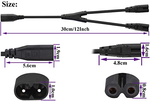 AAOTOKK (2 Pezzi) Cavo CA IEC 320 C8 a Doppio C7 con Splitter a Y, 10 A 125 V Figura 8 Cavo Polarizzato CA Maschio a Femmina Doppio IEC da C7 a C8 per TV LED,Ecc.(0,3 m/12 Pollici) (C8 a 2*C7)