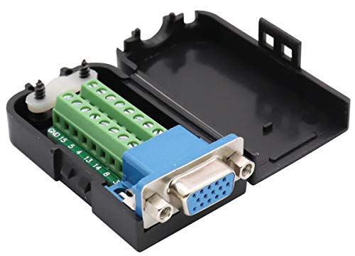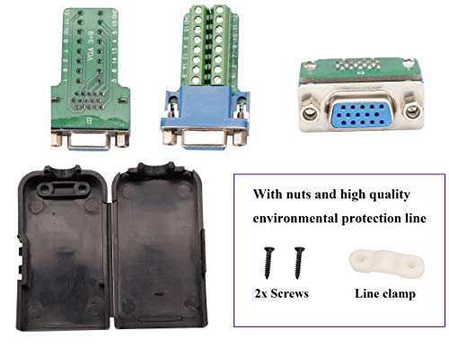 AAOTOKK VGA Vite Morsettiera Adattatore D-SUB 15 Pin 3 Filari DB15 VGA Femmina a 16 Pin/Vie Femmina Terminale Seriale Scheda di Breakout Connettore Modulo con Custodia (2 Pezzi/Femmina)