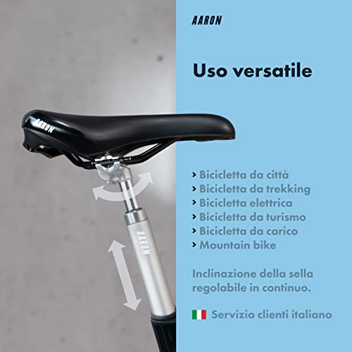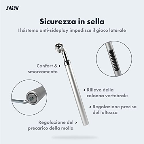 AARON Spring - Reggisella ammortizzato in Alluminio - Diametro 27,2 mm - Lunghezza 350 mm - per Bici elettrica, MTB, da Trekking, City Bike, ECC. - Argento