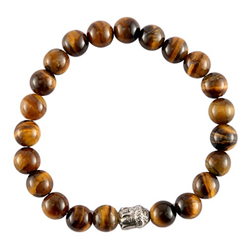 Aatm Reiki Energized Gift Natural Gemstone 7-8mm Round Beaded Tiger Eye Gemstone Chakra Stretch Bracelet Unisex for Healing (Stone of Protection & Harmony)