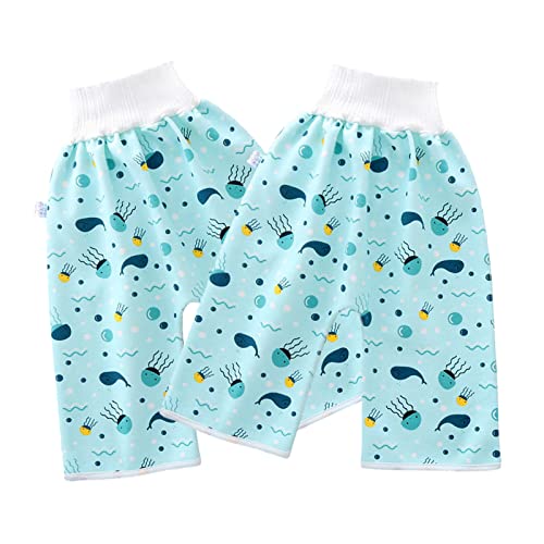 AAWO Comfy Children's Diaper Skirt Shorts, Waterproof Diaper Pants, Potty Training Pants for Baby Boy And Girl Night Time (L,Blue)