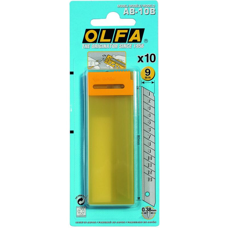OLFA AB-10B - Pack de 10 cuchillas troceables 9 mm plateadas en blister.