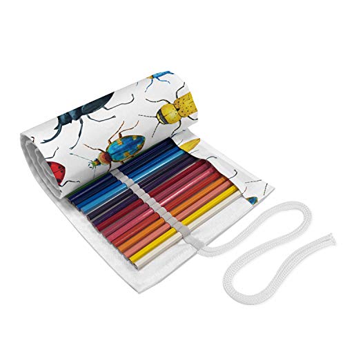 ABAKUHAUS Acquerello Roll-up Portapenne Portamatite, Gli insetti colorati, Organizzatore di Matita in Tela Resistente e Portatile, 36 Passanti, Multicolore