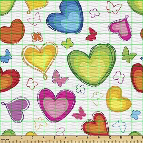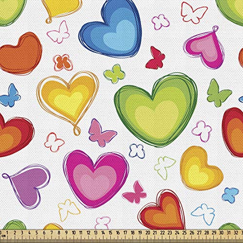 ABAKUHAUS Amore Tessuto a Metraggio, Colorful felice farfalle, Tessuto Decorativo per Tappezzeria e Accenti Casa, 5 m, Multicolore