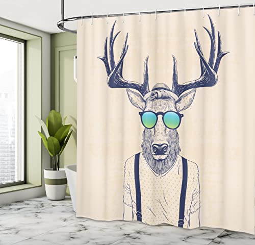 ABAKUHAUS Antlers Tenda da Doccia, Hipster Raffreddare Fun Animal, Tessuto Set di Decorazioni per Il Bagno con Ganci, per la Vasca da Bagno, 175 cm x 200 cm, Beige Blu Scuro
