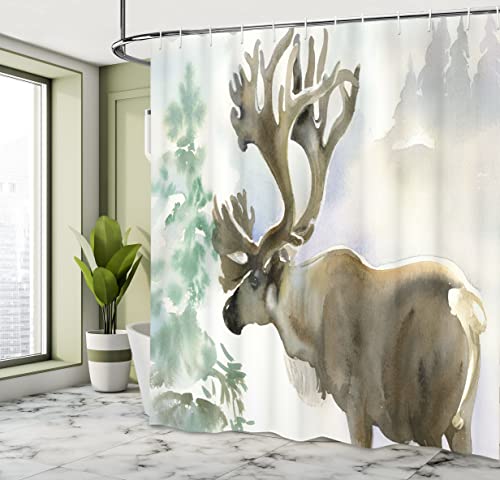 ABAKUHAUS Antlers Tenda da Doccia, Winter Forest Stile Vernice, Tessuto Set di Decorazioni per Il Bagno con Ganci, per la Vasca da Bagno, 175 cm x 200 cm, Beige Verde