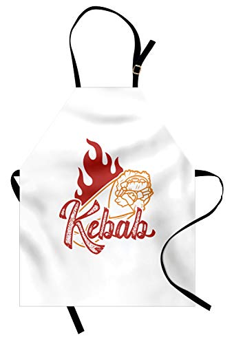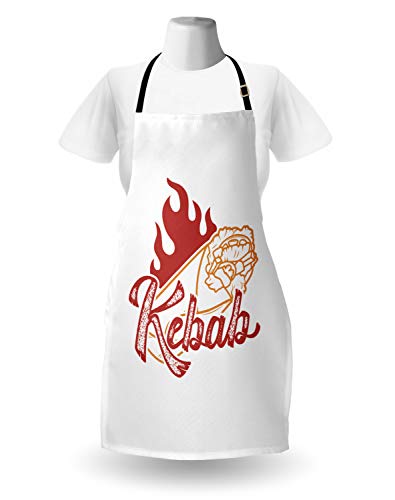 ABAKUHAUS Doner Grembiule da Cucina, Emblema Come Design Kebab Lettering Outline Wrap Flame, Lavabile a Lavatrice Resistente all'Acqua Non sbiadenti, Vermilion Albicocca Bianca