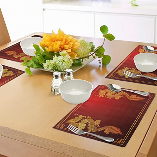 ABAKUHAUS Drago Tovaglietta Americana Set di 4, Creatura Storico, Tovagliette in Tessuto Lavabile per Tavolo da Pranzo Cena, Arancione Giallo