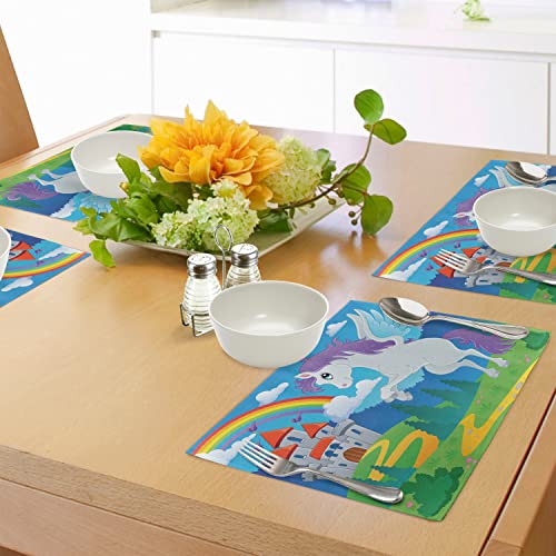 ABAKUHAUS Fantasia Tovaglietta Americana Set di 4, Unicorno con Arcobaleno Fata, Tovagliette in Tessuto Lavabile per Tavolo da Pranzo Cena, Multicolore