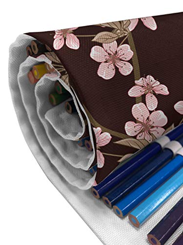 ABAKUHAUS fiore di ciliegio Roll-up Portapenne Portamatite, Giardino Giapponese, Organizzatore di Matita in Tela Resistente e Portatile, 36 Passanti, Marrone chiaro caffè