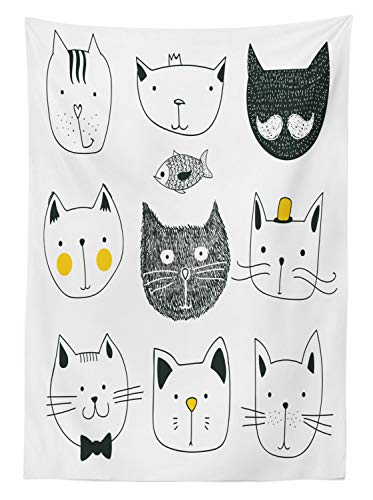 ABAKUHAUS Gatto Tovaglia, Gatti con Pesce, Rettangolare per Sala da Pranzo e Cucina, 140 cm x 200 cm, Grigio Giallo