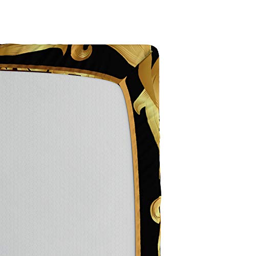 ABAKUHAUS Giallo Damasco Lenzuolo con Angoli, Cornice barocca, Morbido Tessuto Decorativo da Letto Tasca Elastica a Tutto Tondo, 160 cm x 200 cm, Giallo