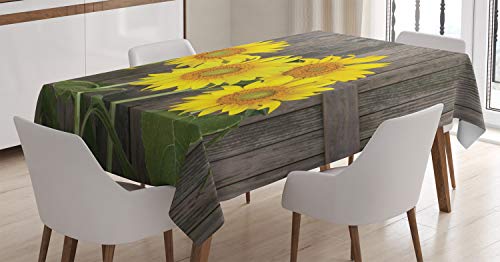 ABAKUHAUS Girasole Tovaglia, Helianthus Girasoli, Rettangolare per Sala da Pranzo e Cucina, 140 cm x 200 cm, Marrone Giallo Verde