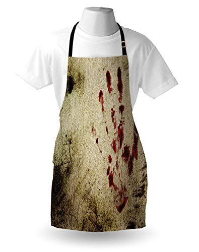 ABAKUHAUS Horror House Grembiule, Bloddy Sporco Mano, Comodo per la Cucina Unisex con Collo Regolabile per Cucinare Cuocere Arrostire e Giardinaggio, Rosso Beige