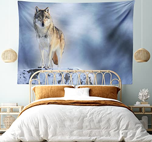 ABAKUHAUS Lupo Arazzo, Carnivore Canine in Neve, Tessuto Parete Appeso Decorazione per Camera da Letto, Soggiorno, dormitorio, 230 x 140 cm, Multicolore Blu