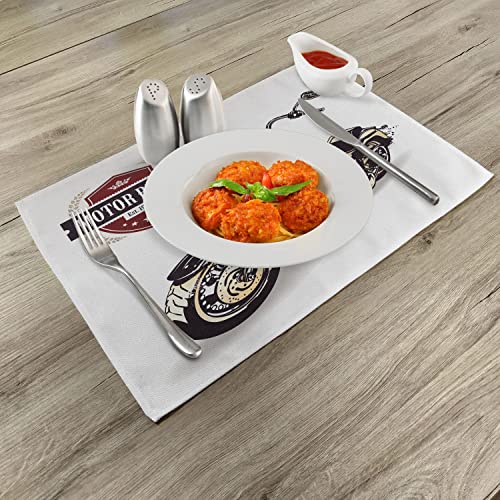 ABAKUHAUS Motociclo Tovaglietta Americana Set di 4, Old Classic Motorcycle, Tovagliette in Tessuto Lavabile per Tavolo da Pranzo Cena, Nero Beige