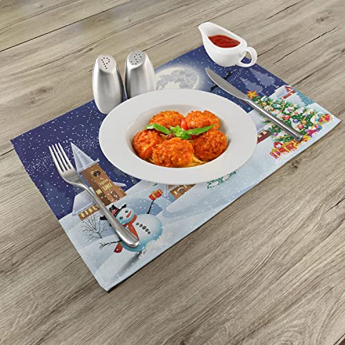 ABAKUHAUS Natale Tovaglietta Americana Set di 4, Paesaggio Invernale, Tovagliette in Tessuto Lavabile per Tavolo da Pranzo Cena, Bianco Blu